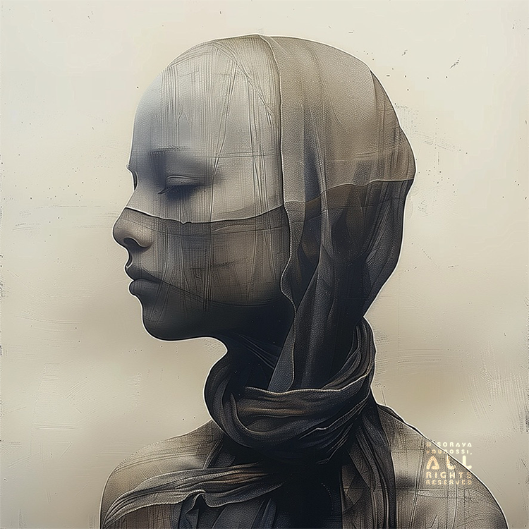 The visual language of this series—ghosted contours, softened shadows, and layered transparency—speaks to the complexity of internal experience. The veils serve as both protective barrier and intimate archive, holding within them traces of grief, silence, and resilience. The figures do not seek to declare themselves outwardly; instead, they invite us to witness the subtle unfolding of an inner world shaped by loss and remembrance.