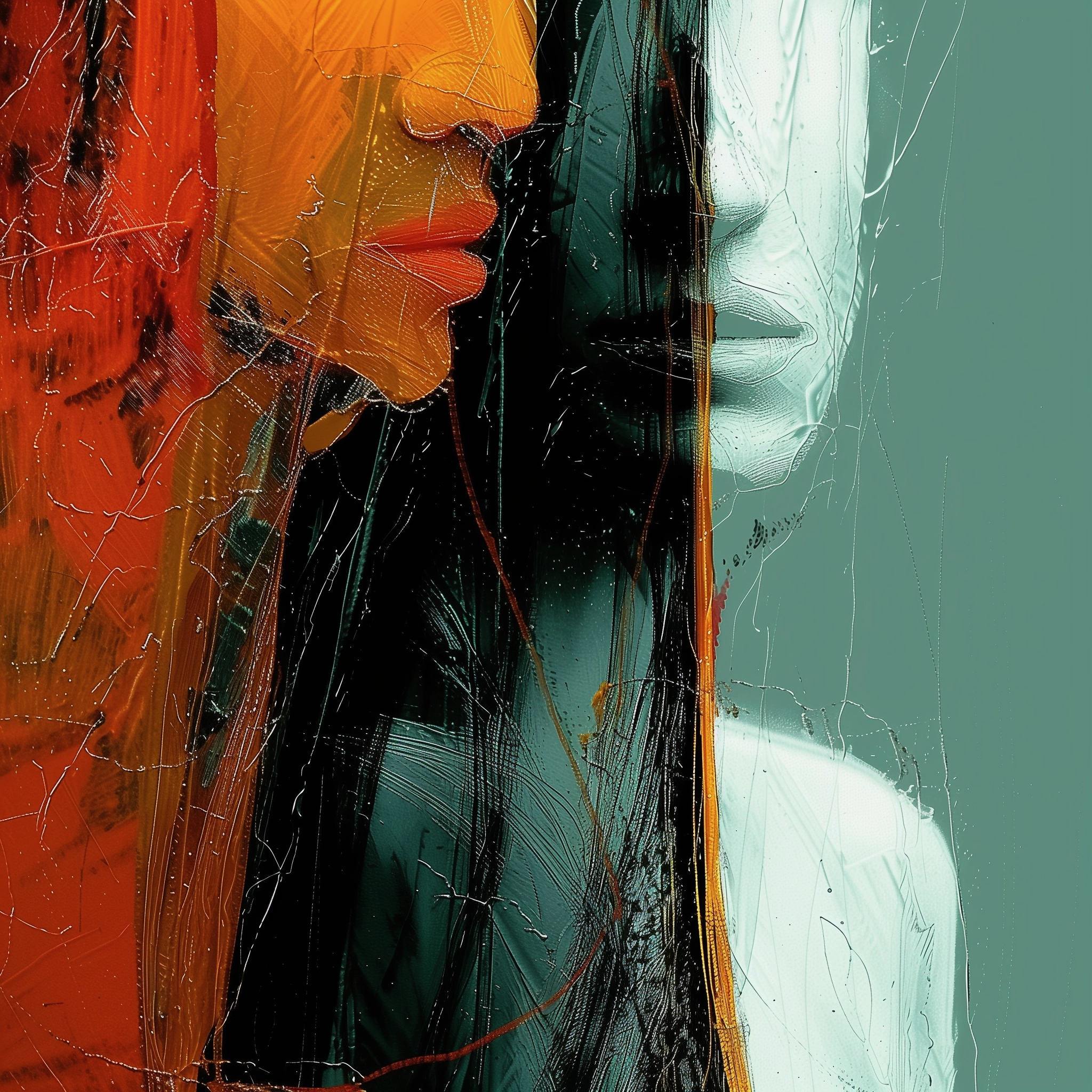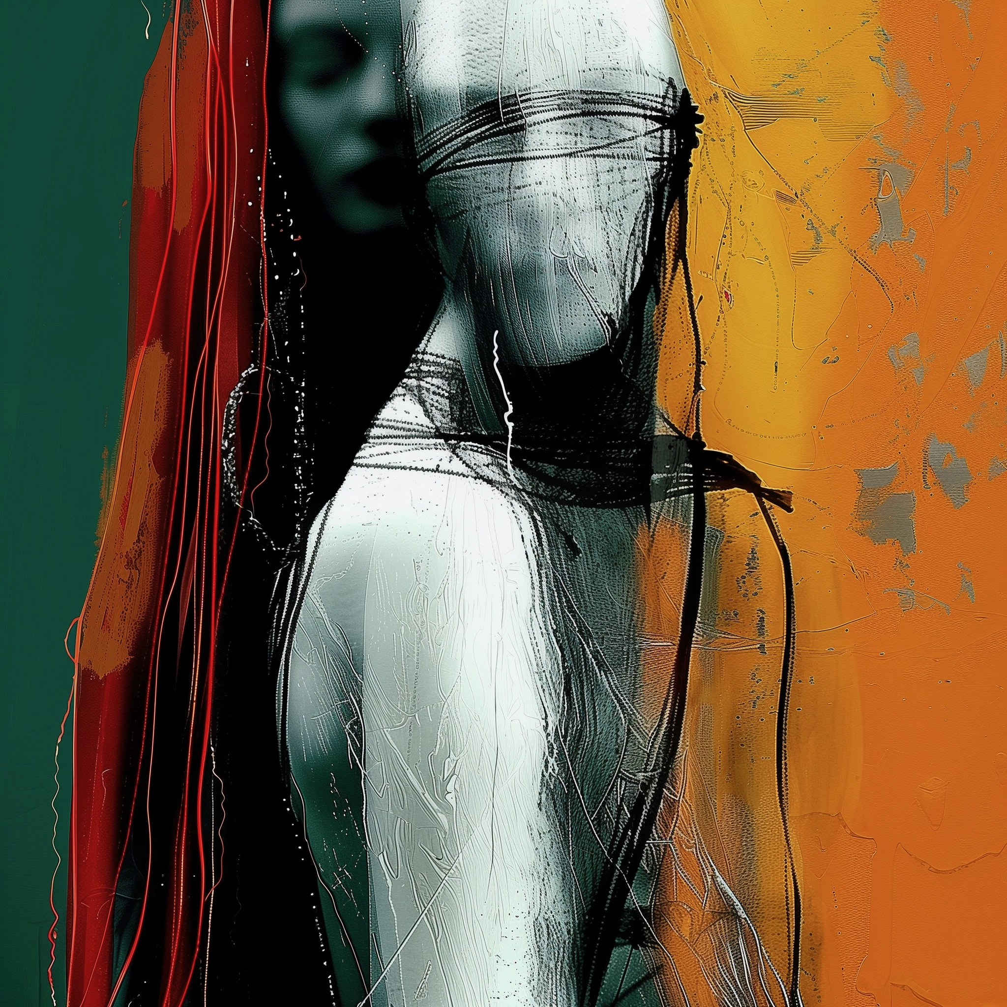 The figures do not scream. Their silence is not emptiness—it is density. In these works, color becomes wound, shadow becomes voice, and fracture becomes form. The skin bears marks that the world often refuses to name—bruises of erasure, seams of resistance, quiet thresholds of transformation.